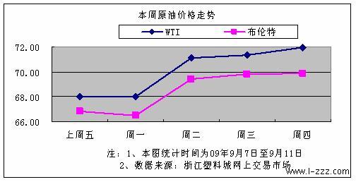 原油期貨周四走高,因美元下跌,不過漲幅有限,因為美國汽油庫存意外上升。美元走軟在石油市場是長期預測的結果,因投資者將看作是經濟回退期安全的保障而進行投資,以在經濟復蘇后能夠獲得利潤。美元對歐元已經連續三天創下今年的新低點。美國能源情報署周四發布報告稱,截止9月4日當周,美國原油庫存減少590萬桶。接受道瓊斯通訊社調查的分析師平均預計,美國上周原油庫存將下降160萬桶。市場也預期石油輸出國組織(歐佩克)將維持其目前的產量限額不變。該組織正在維也納召開會議。成員國必須維持目前的產量直到2010年中期才能將全球庫存水平拉回到正常水平。如果歐佩克產量增加的話,未來幾個月油價很難走高。至周五收盤,WTI報收于71.94美元/桶,較上周五上漲3.98美元,布倫特上漲2.74美元報收于69.86元/桶。