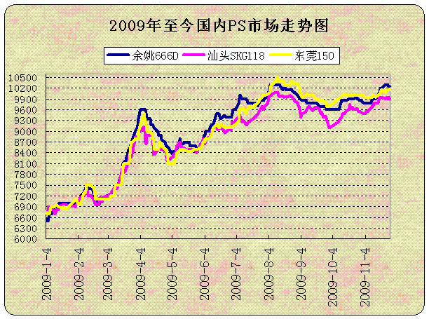 市場方面,11月份市場價格不斷逼近本年度PS市場高價位,商家的操盤風險急劇增多。且終端需求始終無量的明顯突破也為市場埋下重重憂患。